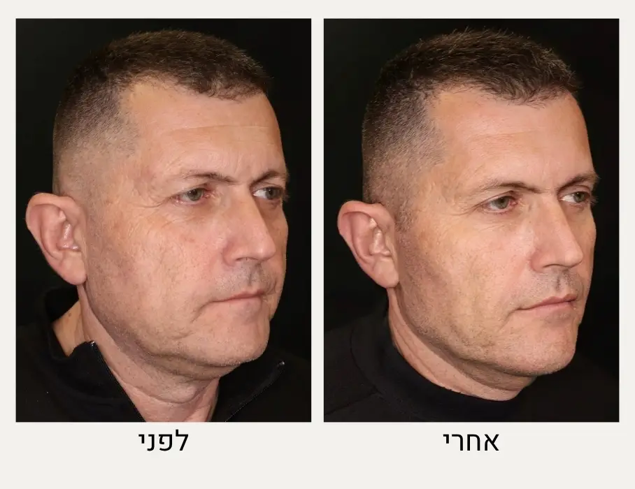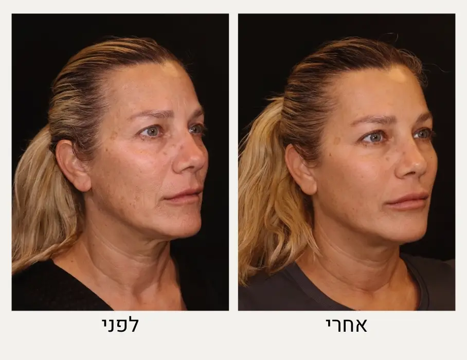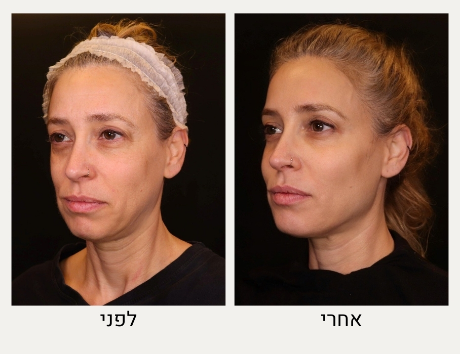 לפני ואחרי טיפול בהזרקת רדיאס בשילוב עם טכניקות נוספות לצורך ייצור קולגן מוגבר התומך במראה רענן וחיוני.